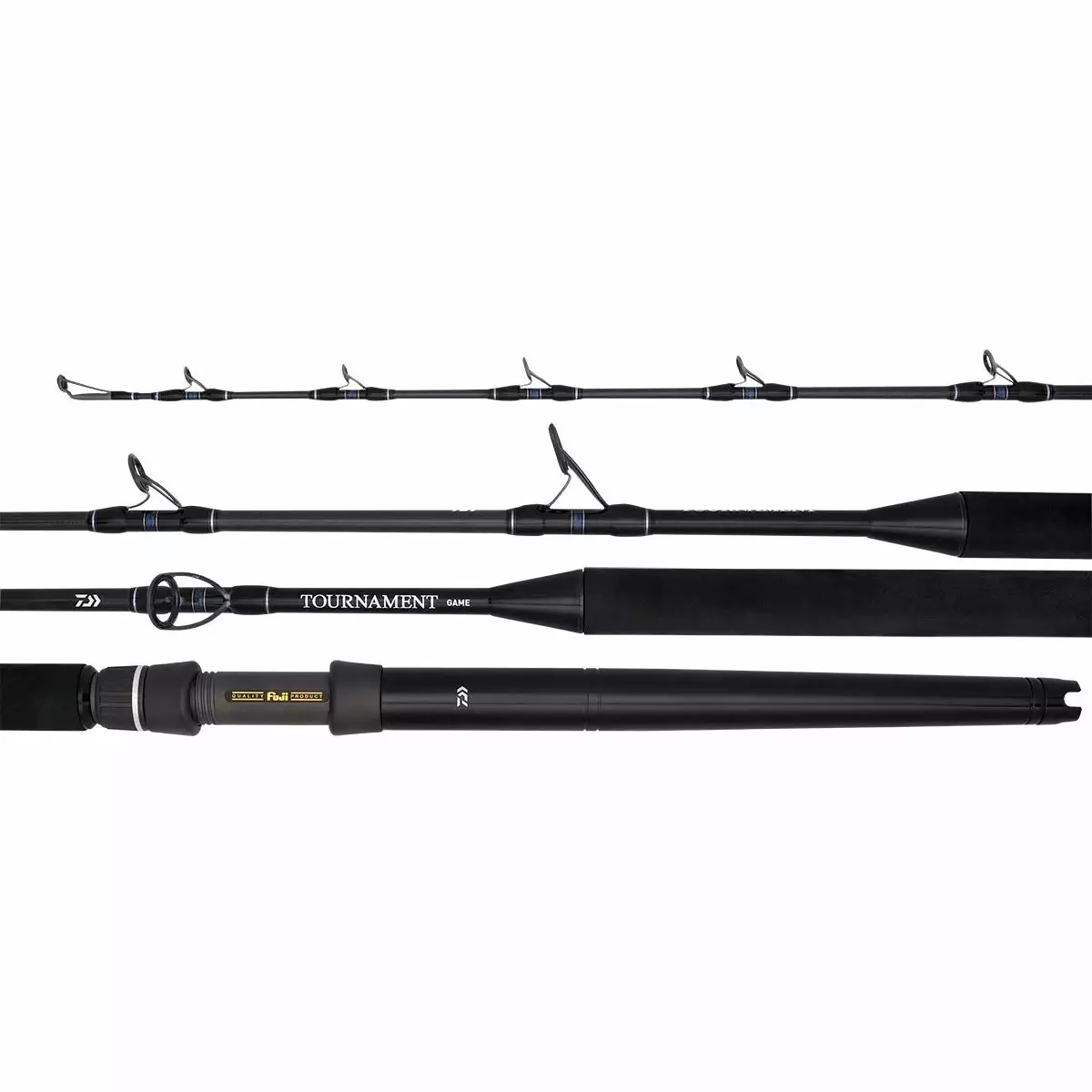 Featuring a custom alloy straight butt which has been made slightly longer than most, TOURNAMENT Game rods position the reel at the perfect height for stand-up fishing. A heavy-duty Fuji reel seat secures your reel with confidence, and Fuji Stainless Steel Corrosion Control (BC) Alconite guides protect monofilament and braided lines even under heavy drag pressure and consistently long runs.