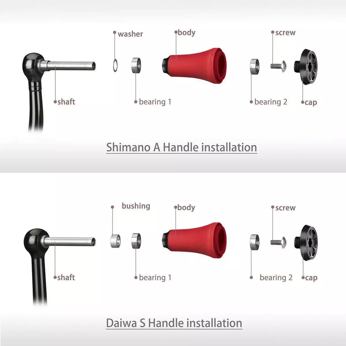 Direct Fitment For Daiwa Spinning Reel Handle S :Ballistic EX LT 1000 – 4000,Fuego LT 1000 – 4000,Certate 1003 – 3500,Exceler LT 1000 – 4000,Tatula LT 1000 – 4000,Procyon LT 1000 – 4000