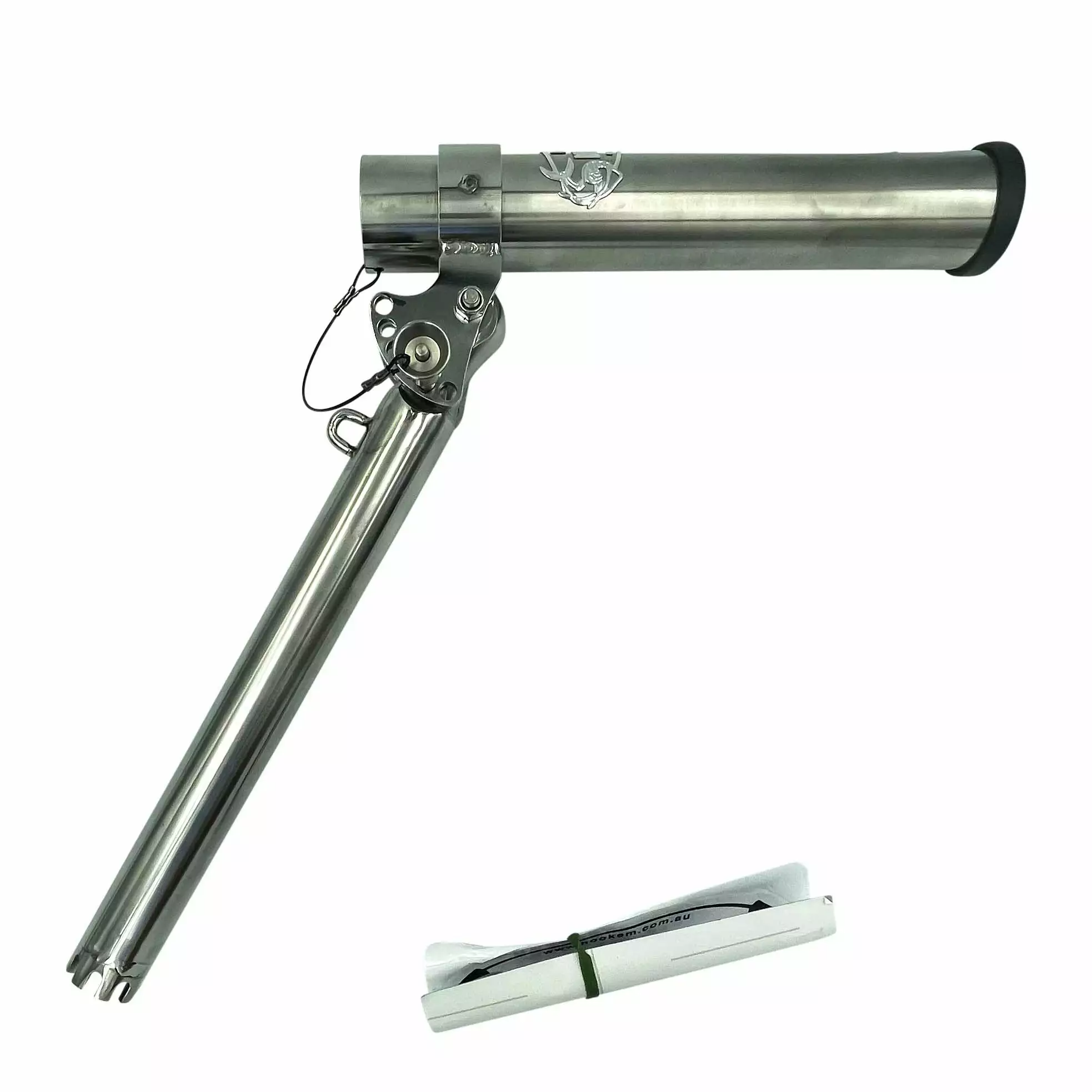 Hook’em Rod Holder Extensions are manufactured from high-grade stainless steel and electro-polished to perfection. Designed for boats without outriggers that want to extend their rod tip position our beyond the prop wash.