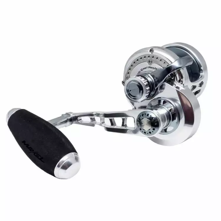 MAXEL has followed up the successful release of the F30 with the F40 and F50. They boast the same features and are designed with a gear ratio of 5.0:1 (line retrieve per crank 85 cm) and high speed ratio 5.8:1 (line retrieve per crank is 98cm).. With a line capacity of 40 lb / 400 m and 50 lb / 400 m respectively, they have a powerful maximum drag of 22 kg. All the reels come with a newly designed high leverage handle and ultra-light knobs.
