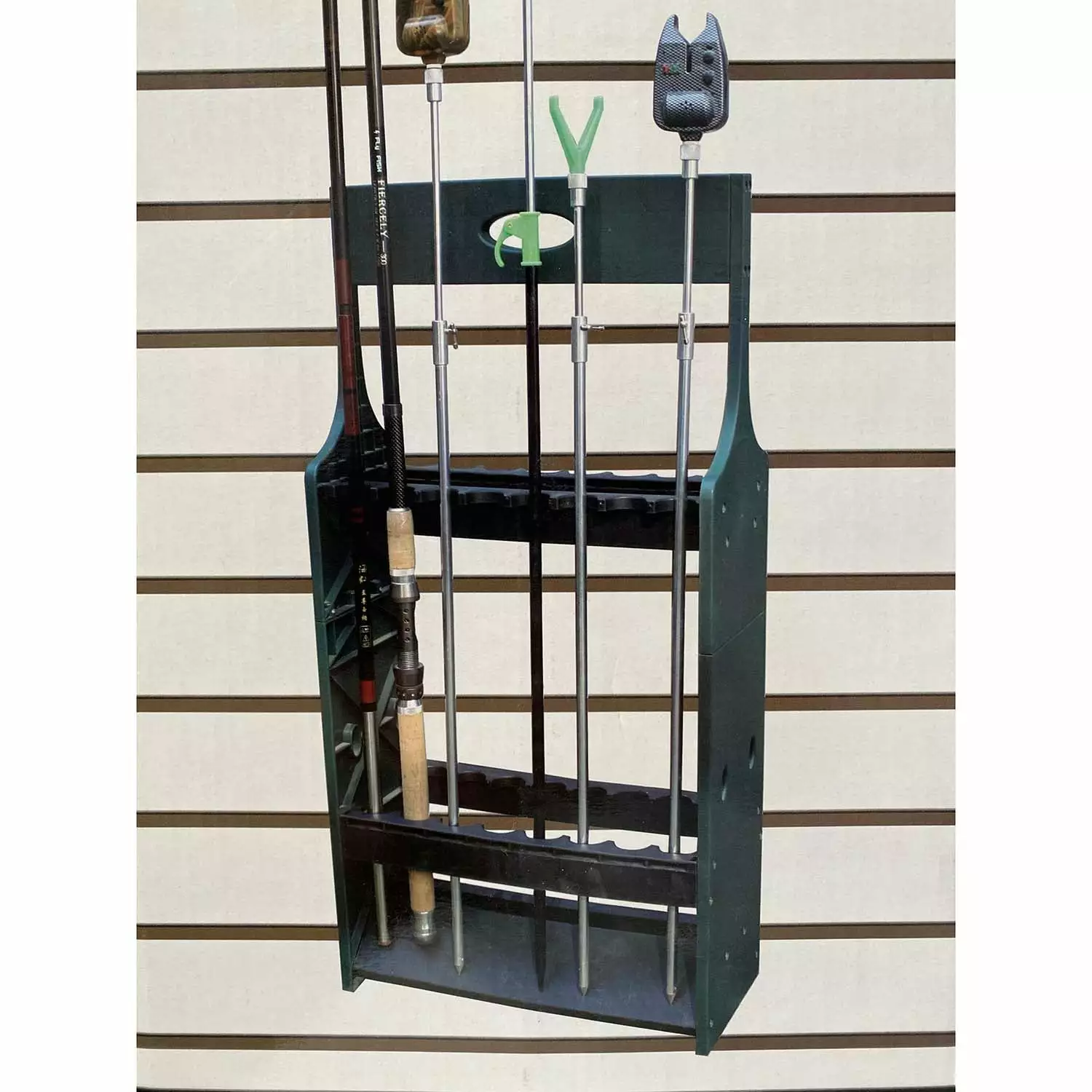 With space for 16 rods, this cost effective rod storage rack is ideal for your garage or tackle shed for storing rods, outrigger poles, or anything of slender height. Its lightweight design and slender profile allows it to fit in most corners. Fully assembled height: 80cm. Width: 28cm.