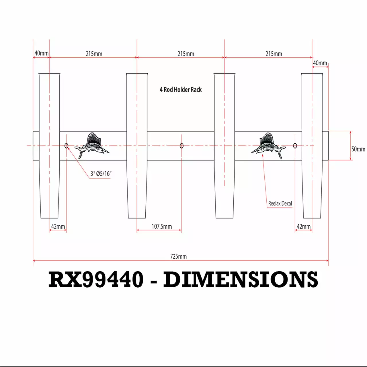 Distance Between Rod Holders (Centre to Centre): 215mm