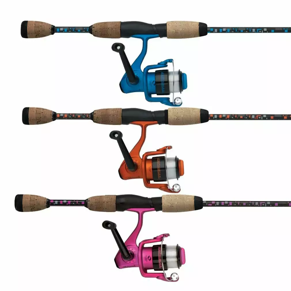 - Tubular glass spinning rods offered in blue, orange, and pink colors
